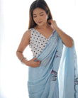Baby Blue Heavy Chinnon Saree with Print and Kutchi Mirror Lace Border