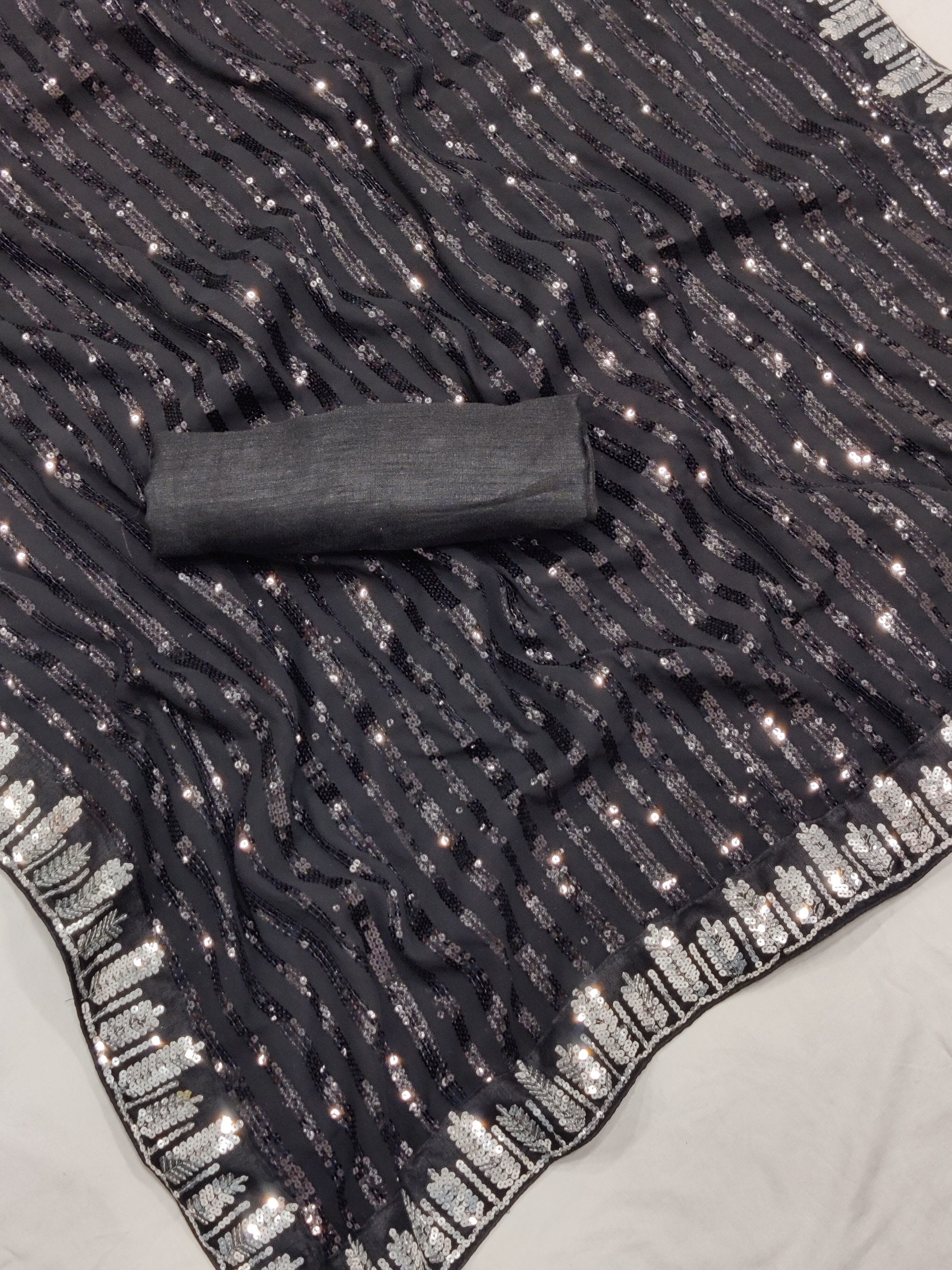 Black Georgette Saree with Sequence Work and Sequence Lace