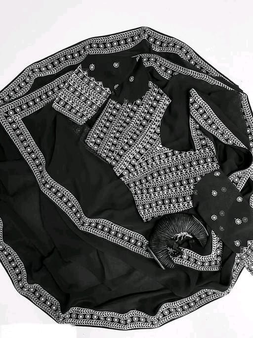 Black Heavy 60g Georgette Saree with Embroidery Work