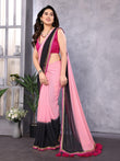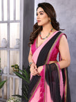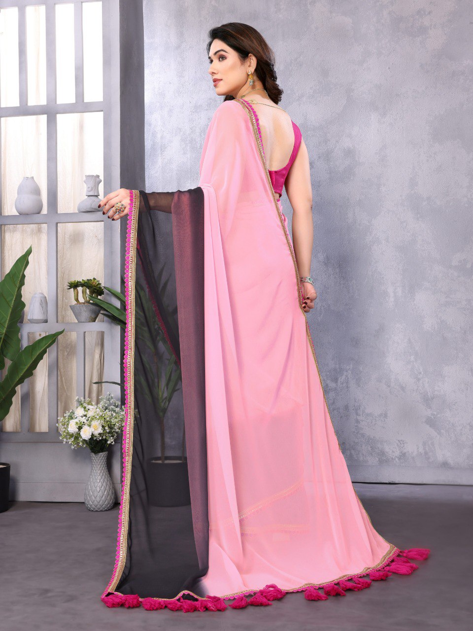 Black-pink Faux Peding Georgette Saree with Multi-cording sequence lace and big pompoms