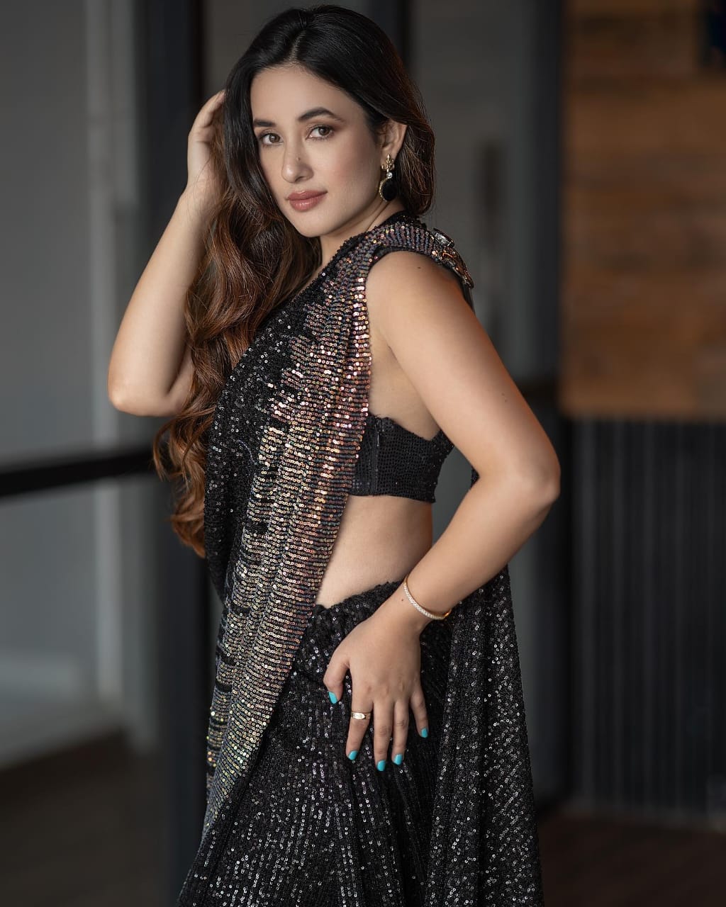 This stunning Black Premium Georgette Saree glimmers with sequins work all over and is neatly finished with elegant piping lace. It’s the ideal pick for late-night parties and celebratory evenings.