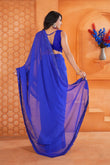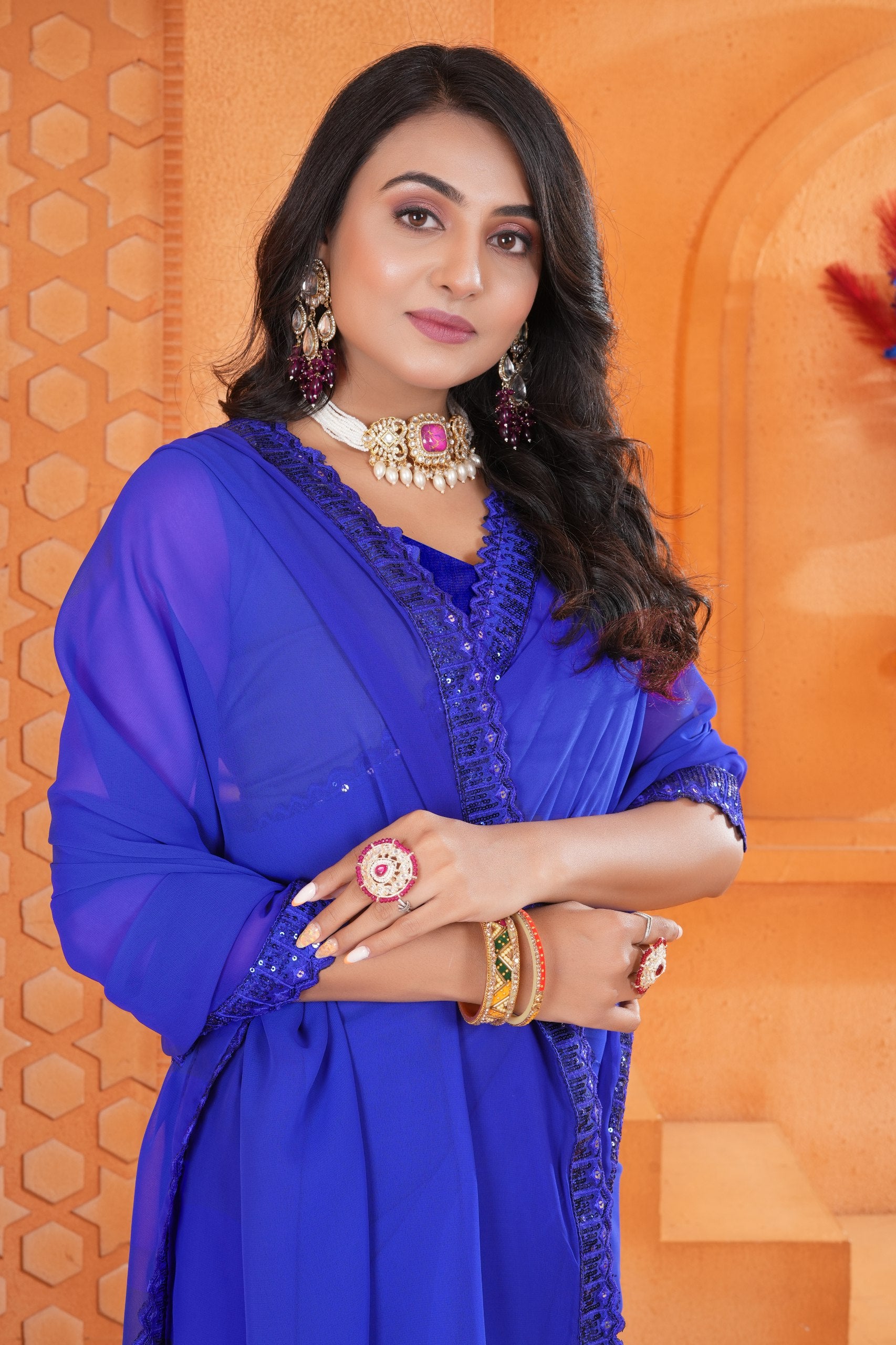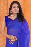 Blue Georgette Saree with Embroidery Dual Sequence Lace and Cutwork