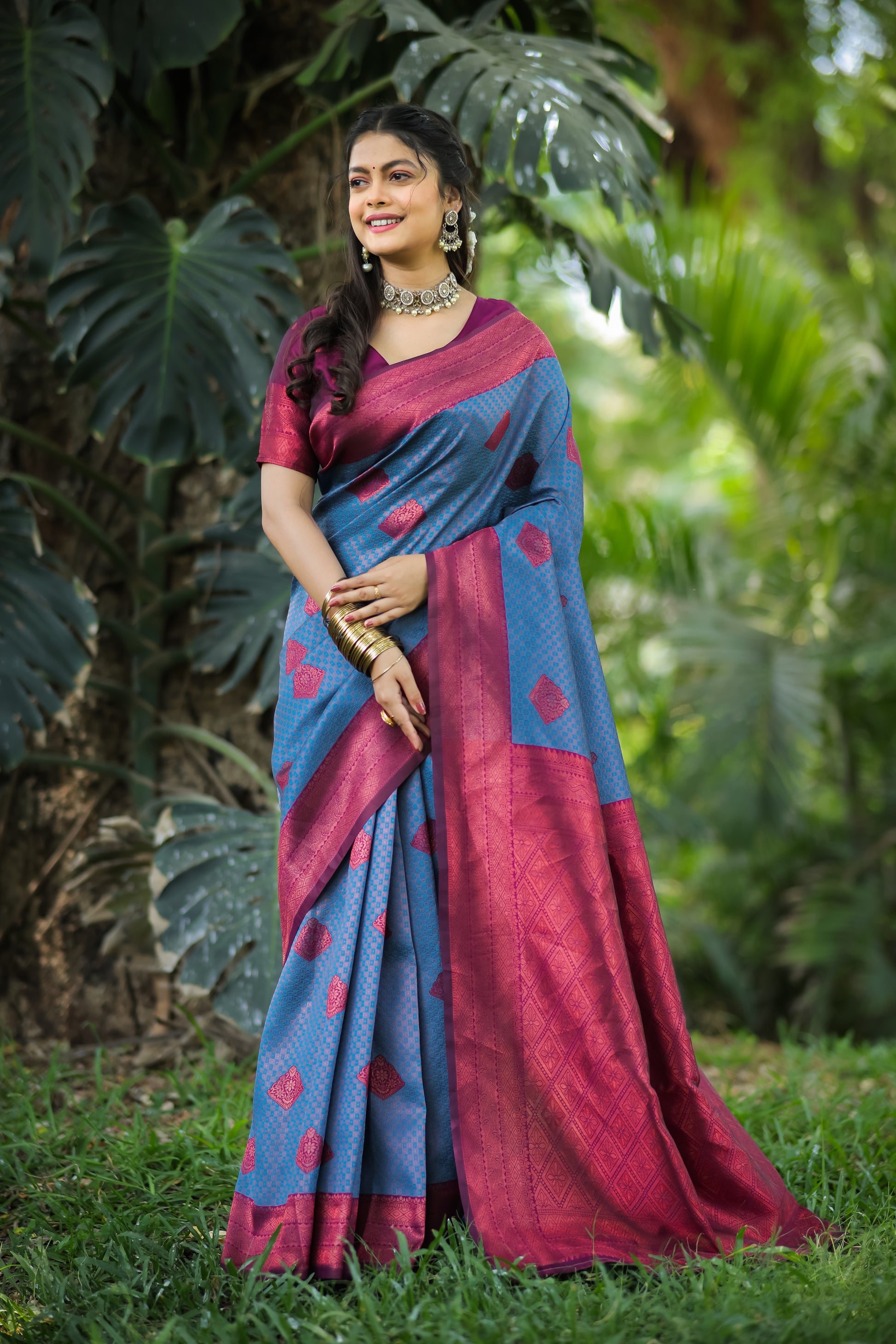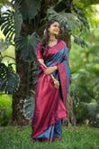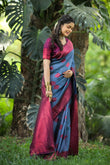 Blue Litchi Soft Silk Banarasi Saree with Butta Zari Woven