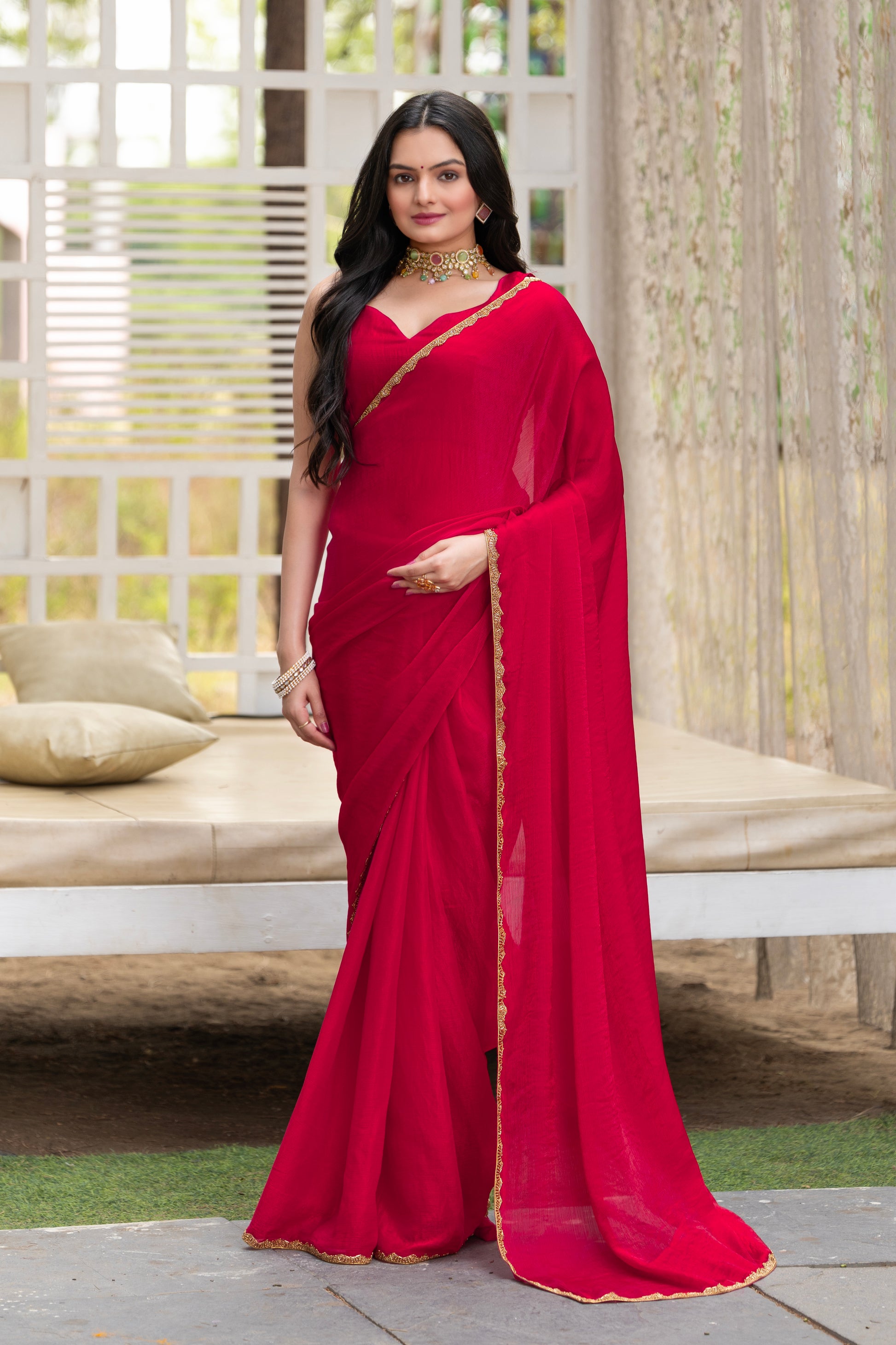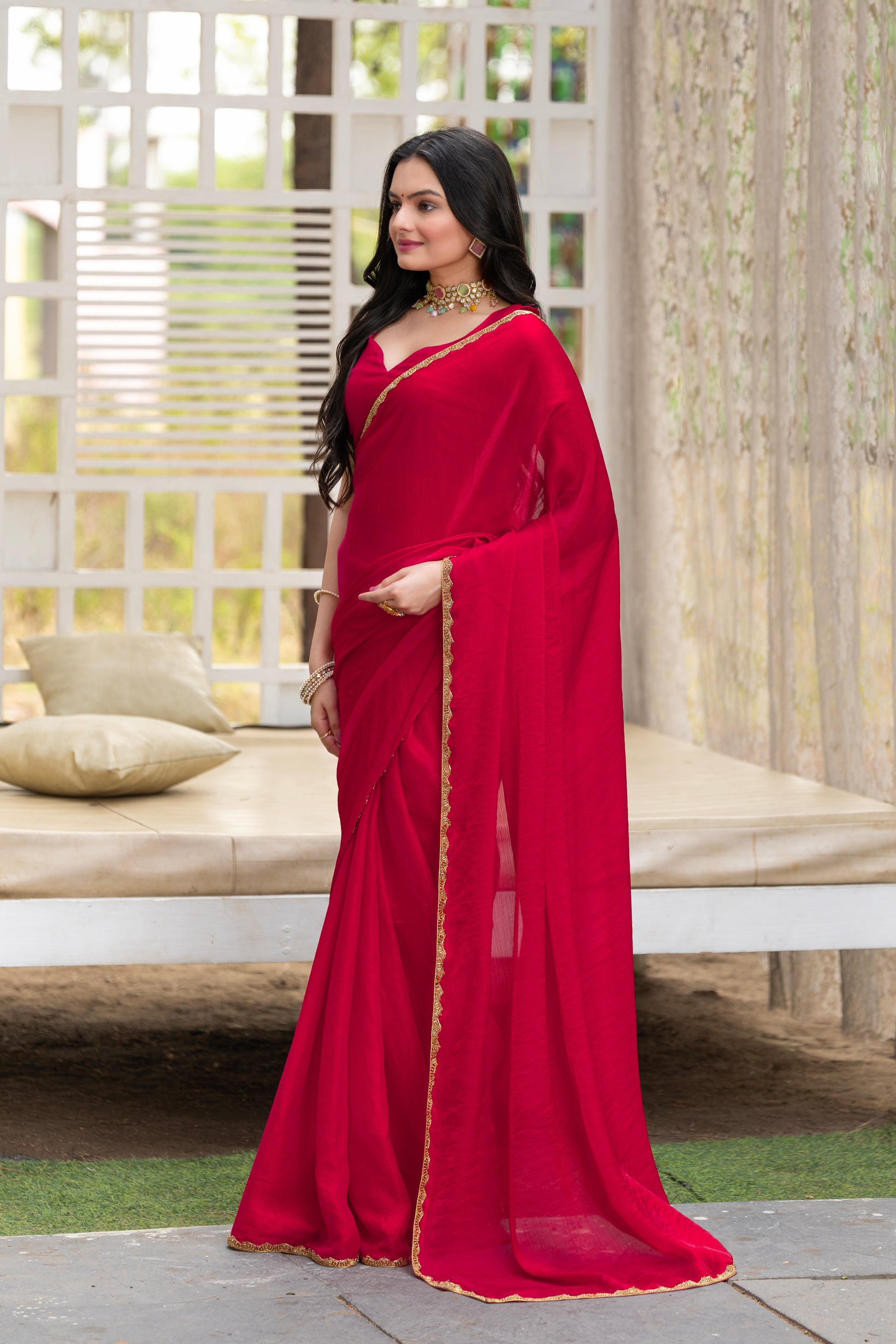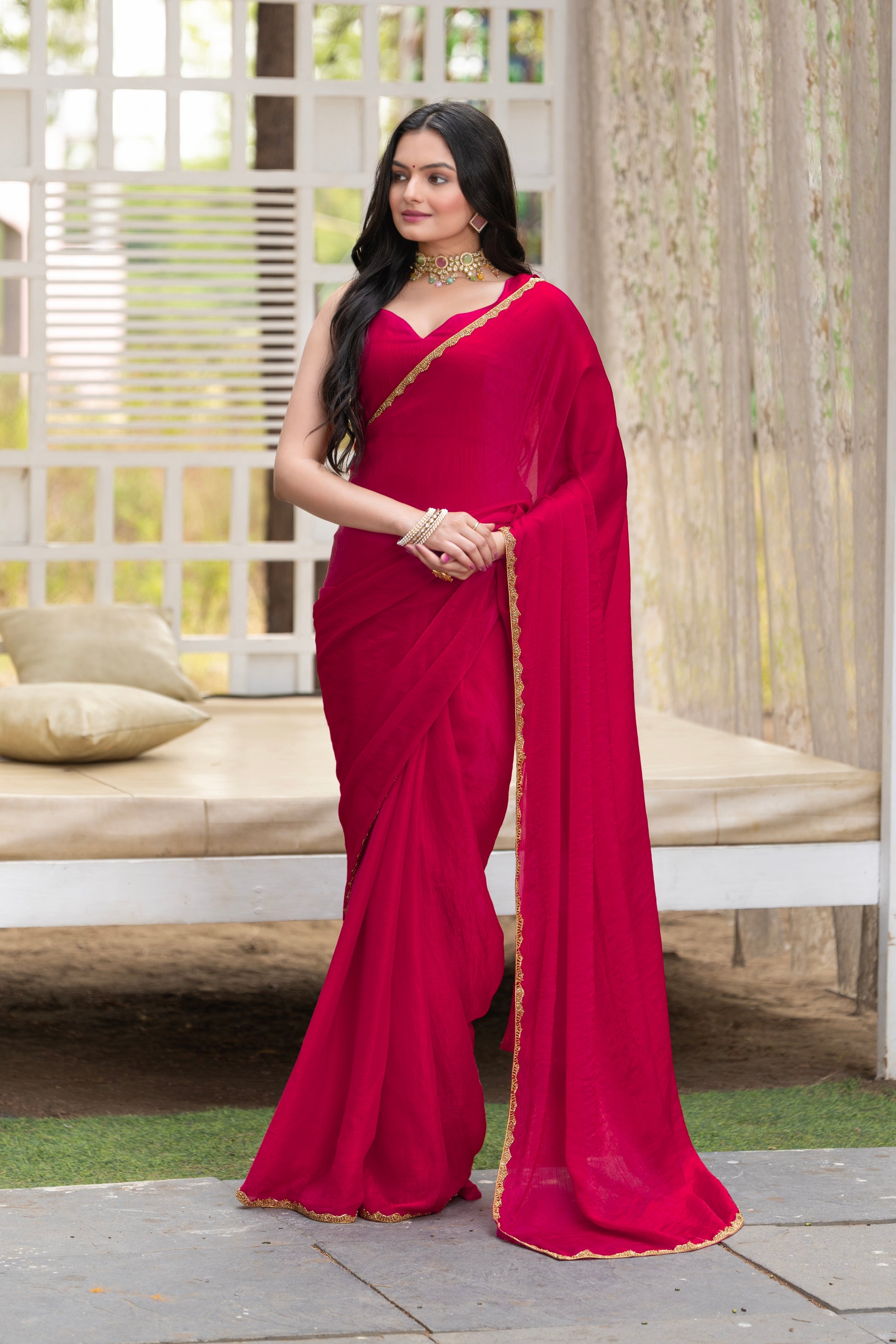 Cherry Chiffon Bollywood Saree with Embellished Border