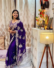 Dark Blue Rangoli Silk Saree with Coding Embroidery and Cutwork Border