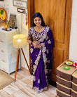 Turn heads with this dazzling black saree, exquisitely crafted in premium georgette. The entire saree is adorned with fine sequin detailing, giving it a shimmering finish perfect for parties and evening occasions. Finished with a sleek piping lace for a refined edge.