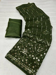 Dark Green Georgette Saree with Embroidery Sequence and Piping Lace