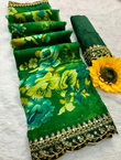 Green Soft Lichi Silk Saree with Rich Pallu and Jari Weaving