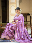 Lavender Soft Silk Saree with Kanjivaram and Banarasi Jari Weaving