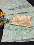 Light Green Heavy Georgette Saree with Sequins and Piping