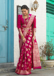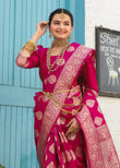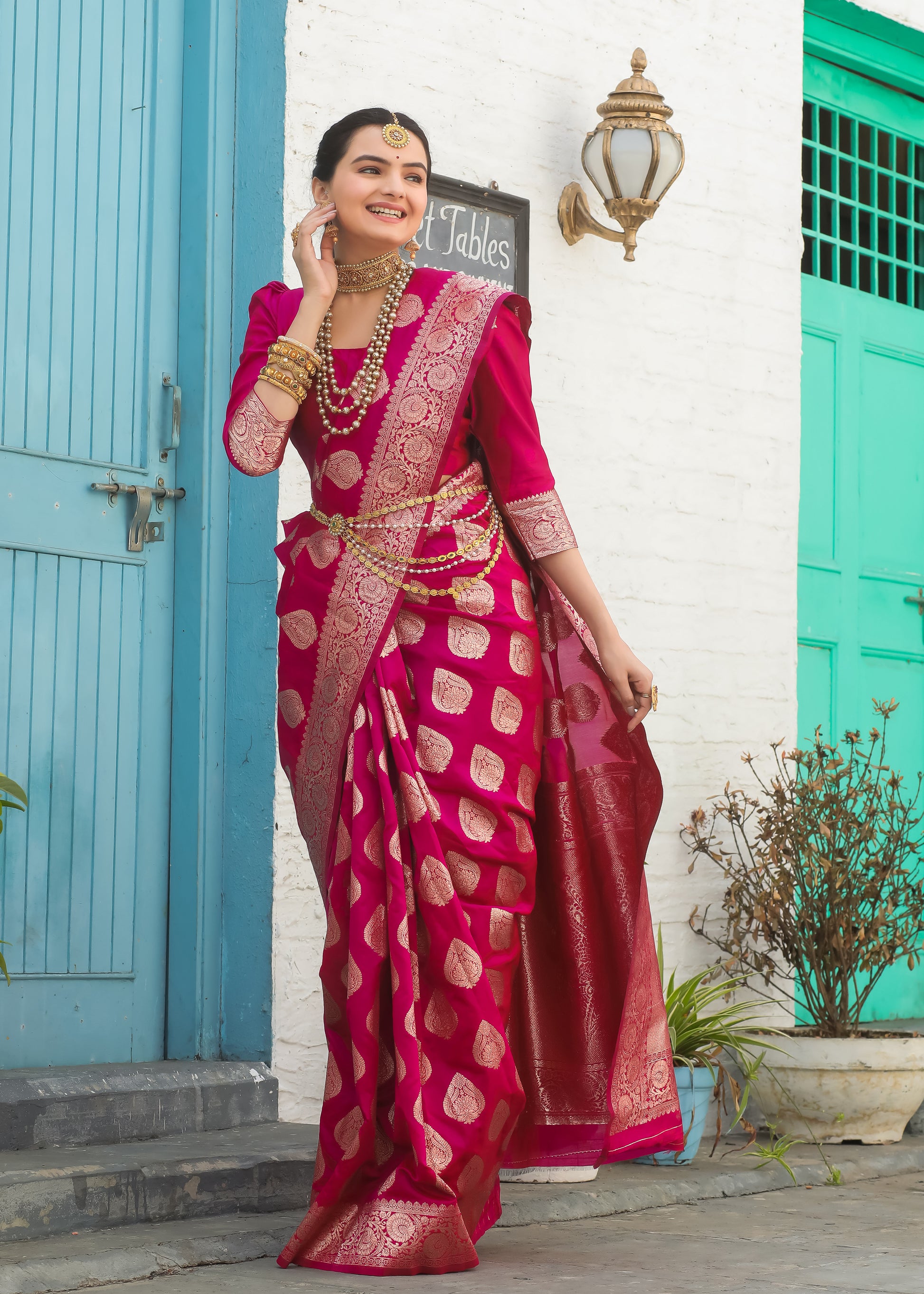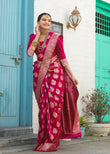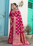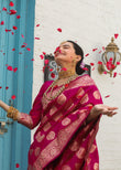 Luxurious Rani Katan Litchi Silk Banarasi Saree Highlighted with Elegant Zari Butta Designs