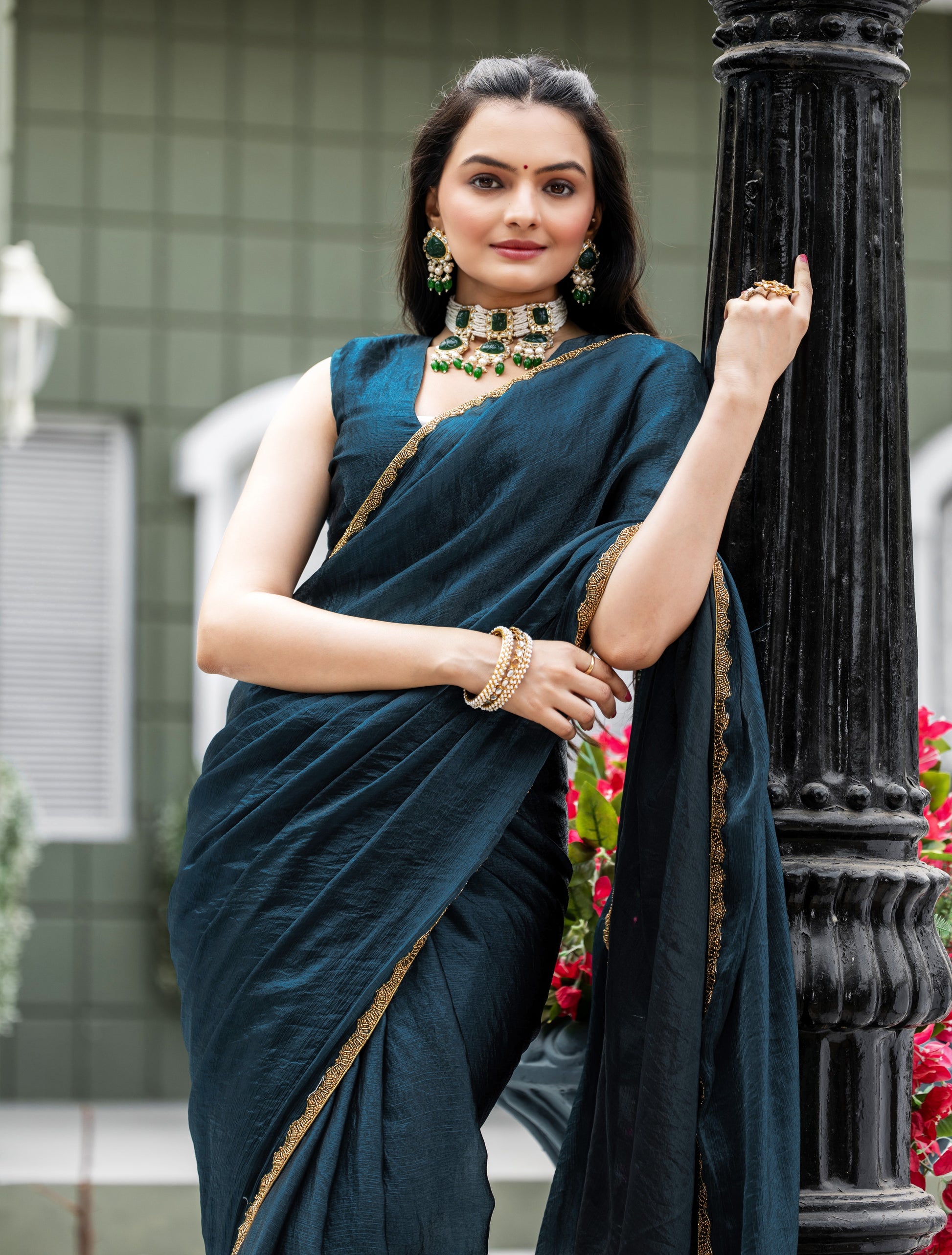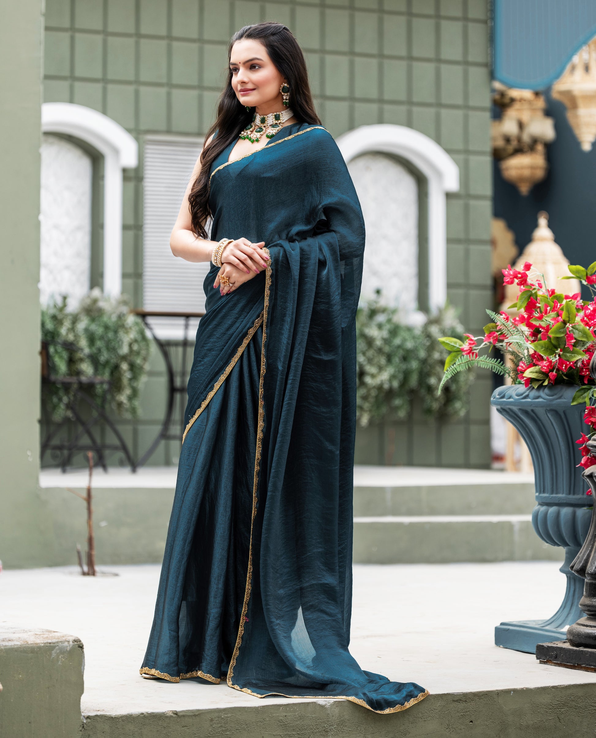 Morpich Chiffon Bollywood Saree with Embellished Border