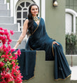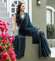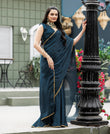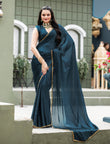 Turn heads with this dazzling black saree, exquisitely crafted in premium georgette. The entire saree is adorned with fine sequin detailing, giving it a shimmering finish perfect for parties and evening occasions. Finished with a sleek piping lace for a refined edge.