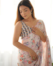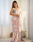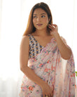 Peach Heavy Chinnon Saree with Print and Kutchi Mirror Lace Border