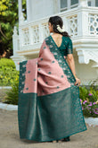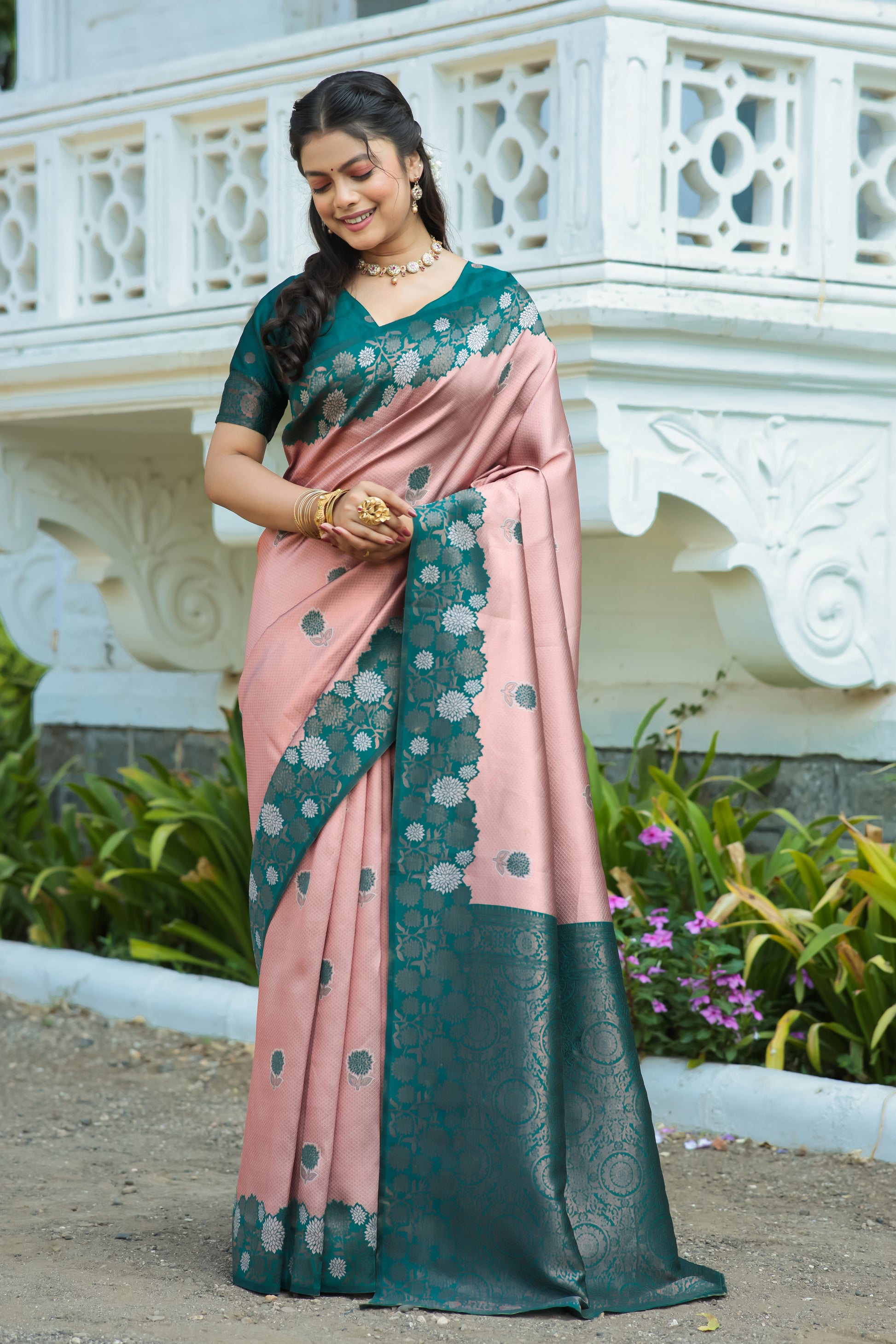 Peach Rama Litchi Soft Silk Banarasi Saree with Work of Floral Zari Woven
