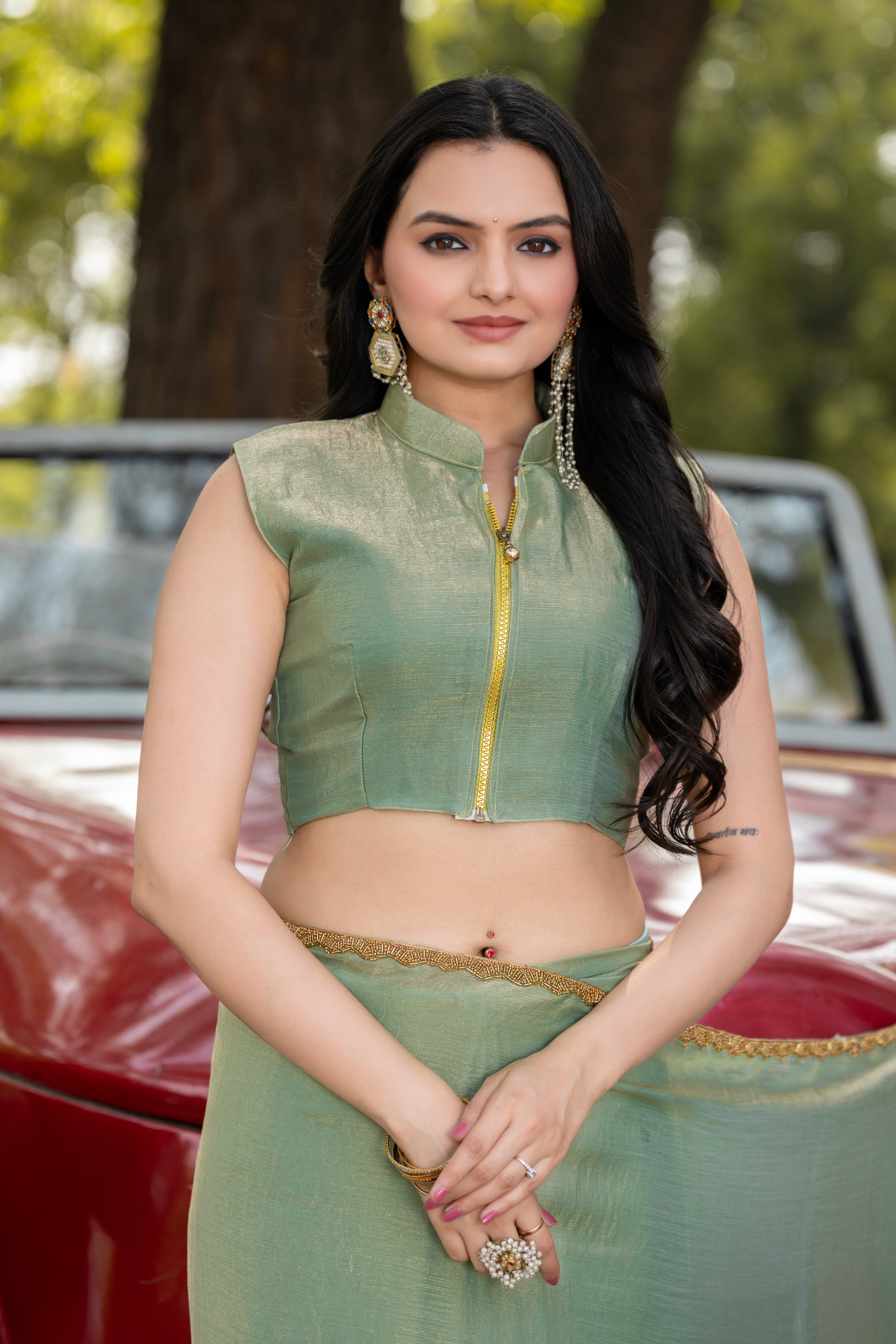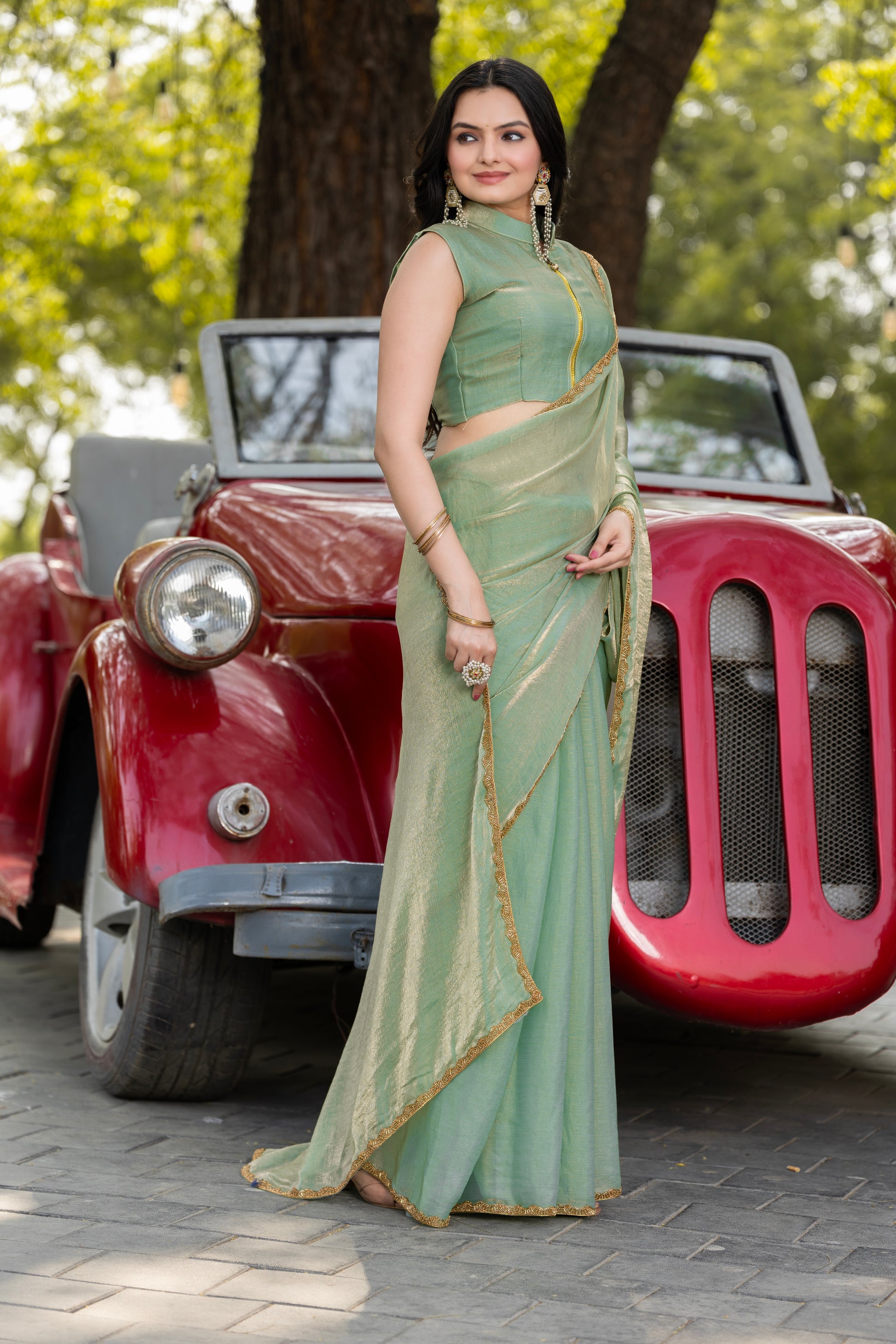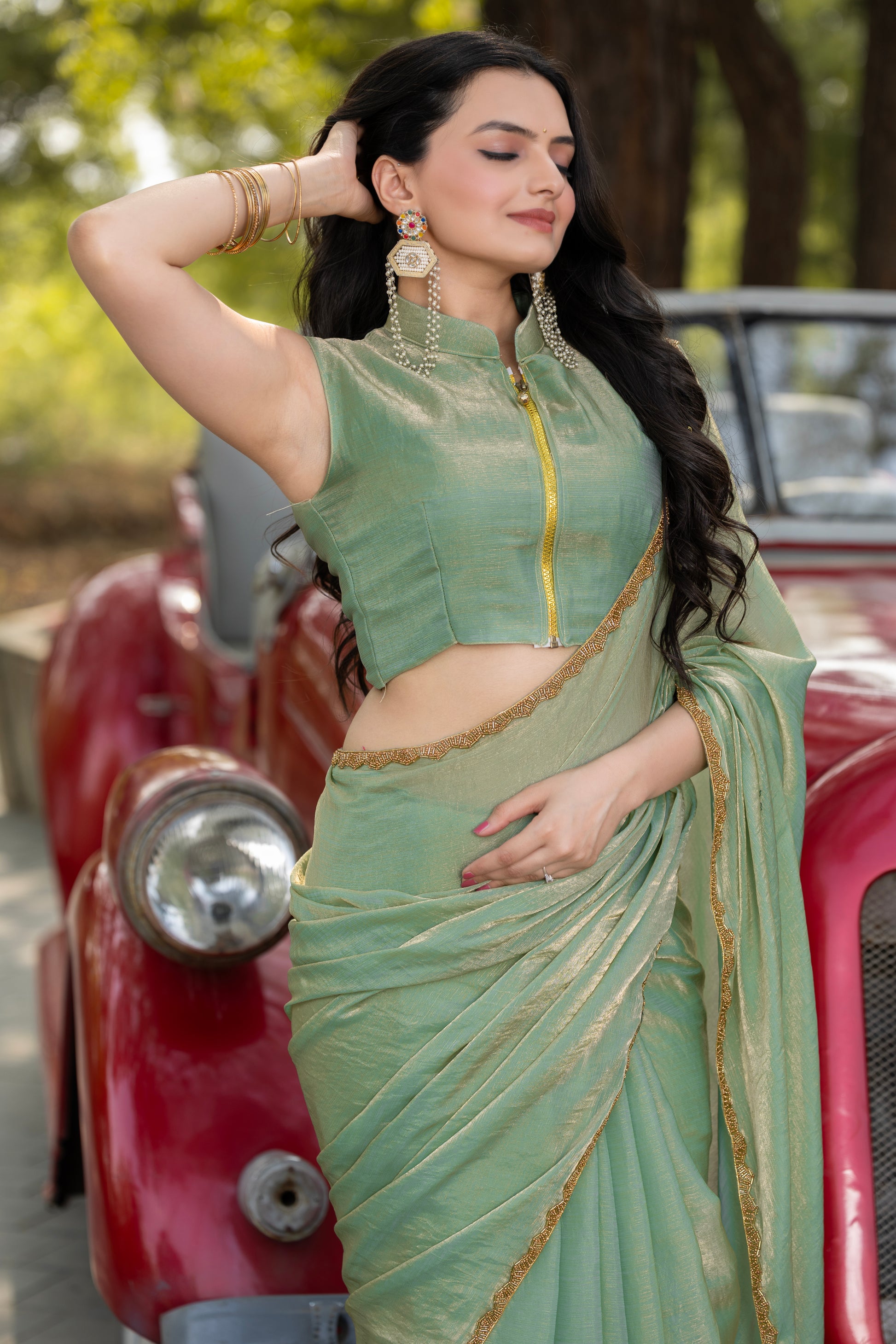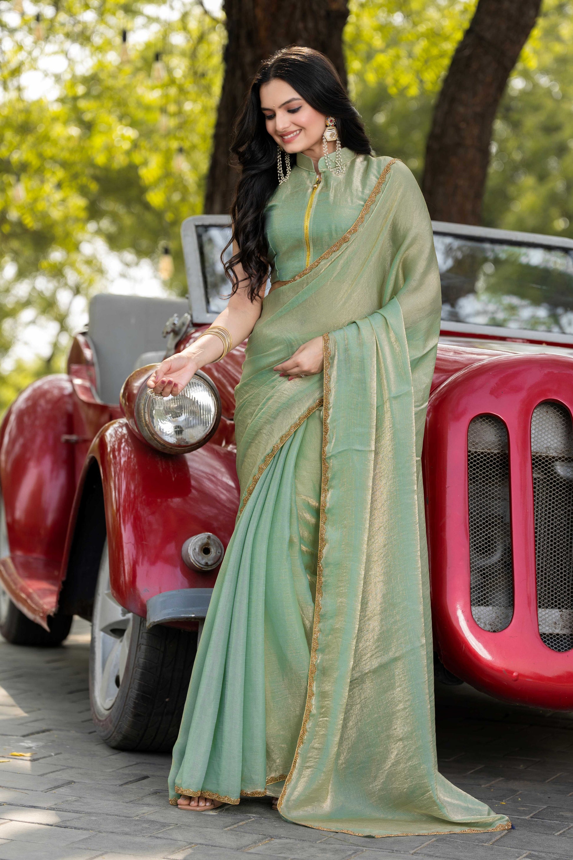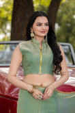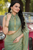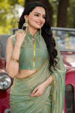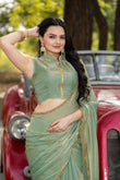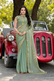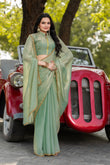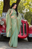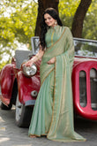 Pista Chiffon Bollywood Saree with Embellished Border