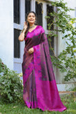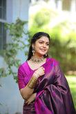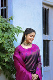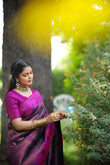 Purple Rani Litchi Soft Silk Banarasi Saree with Floral Zari Woven