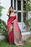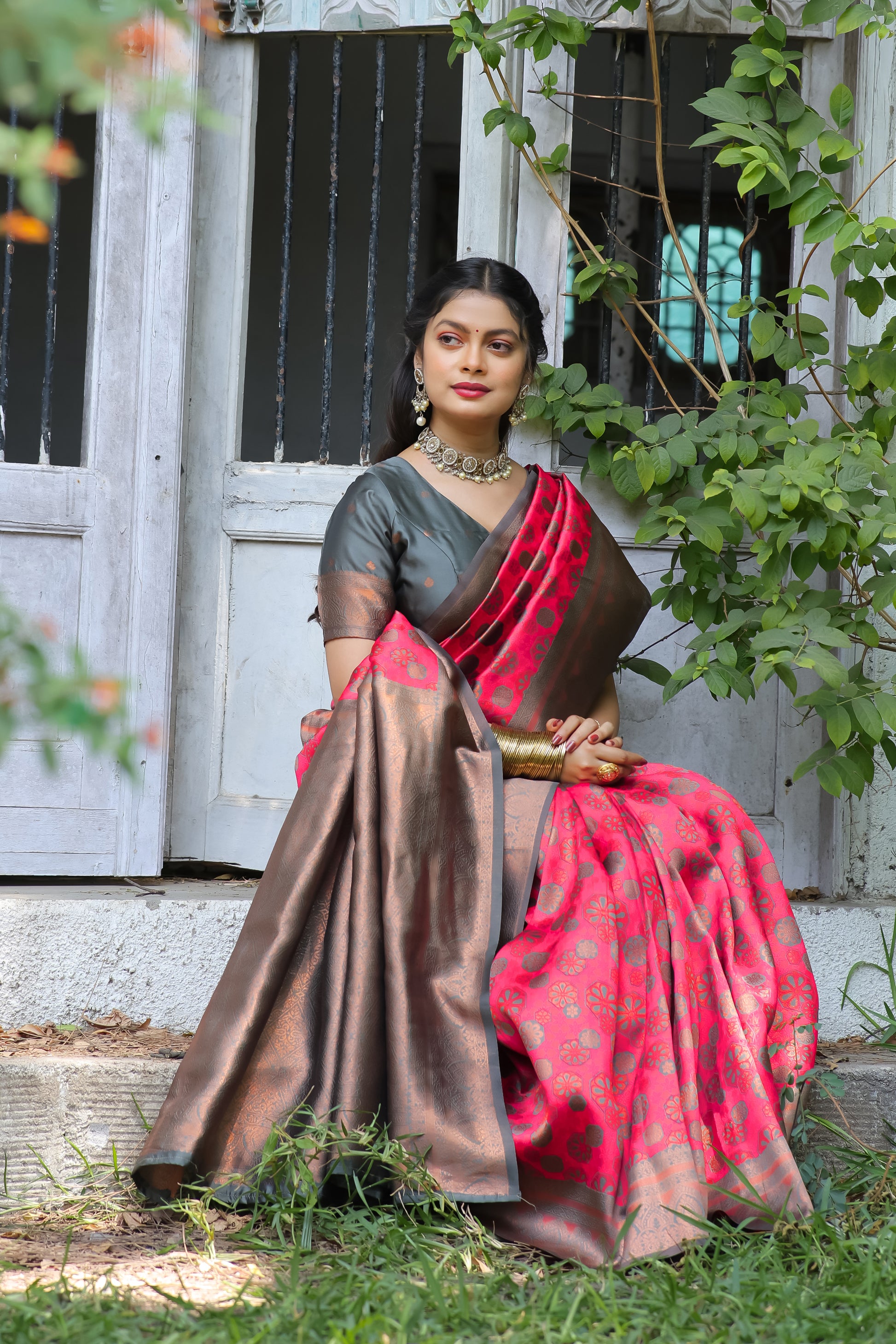 Rani Litchi Soft Silk Banarasi Saree with Floral Zari Woven