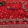 Red Soft Lichi Silk Saree with Rich Pallu and Jari Work