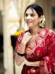 Red Soft Silk Saree with Kanjivaram and Banarasi Jari Weaving
