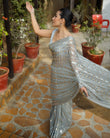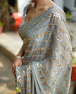 Silver Georgette Saree with Dual sequence embroidery lace with piping