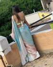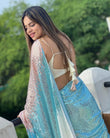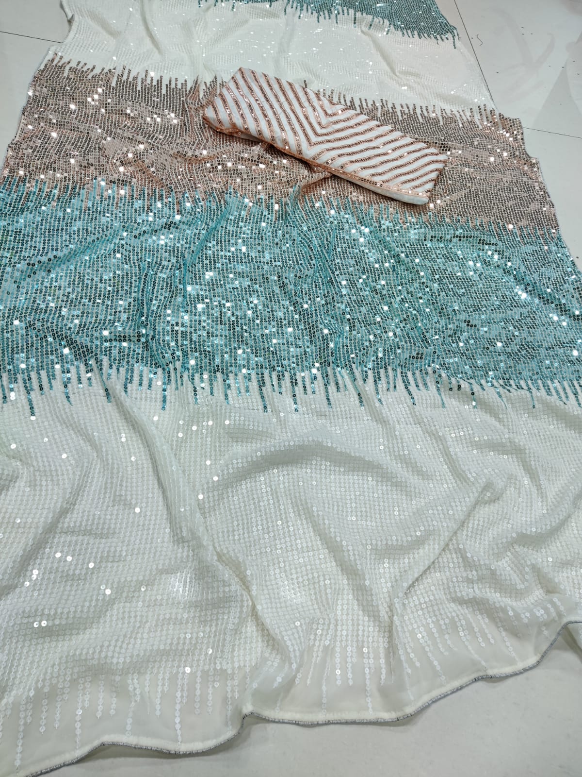 Subtle yet dazzling, this Sky Blue Soft Georgette Saree features shaded sequins work that blends elegance with sparkle. Comes with a stylish sequins blouse for a complete festive look.