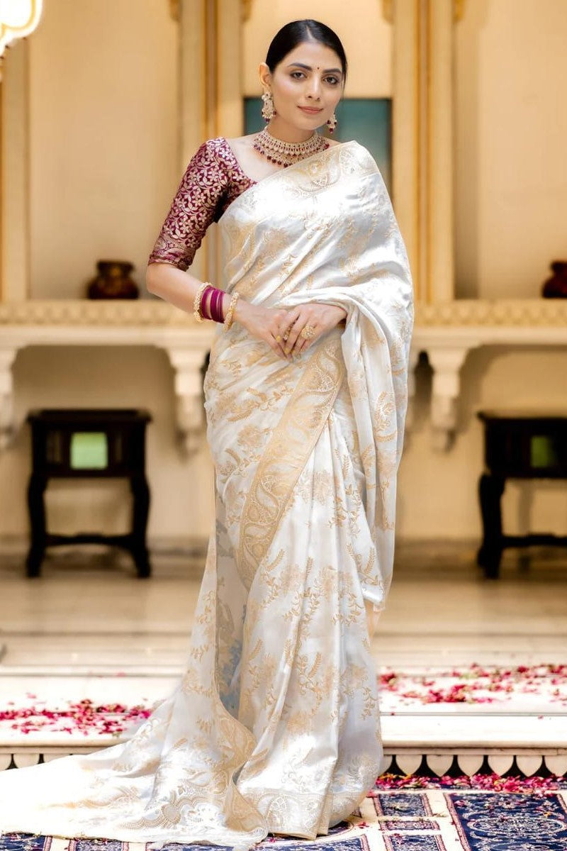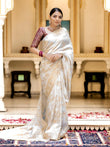 White Soft Silk Saree with Kanjivaram and Banarasi Jari Weaving
