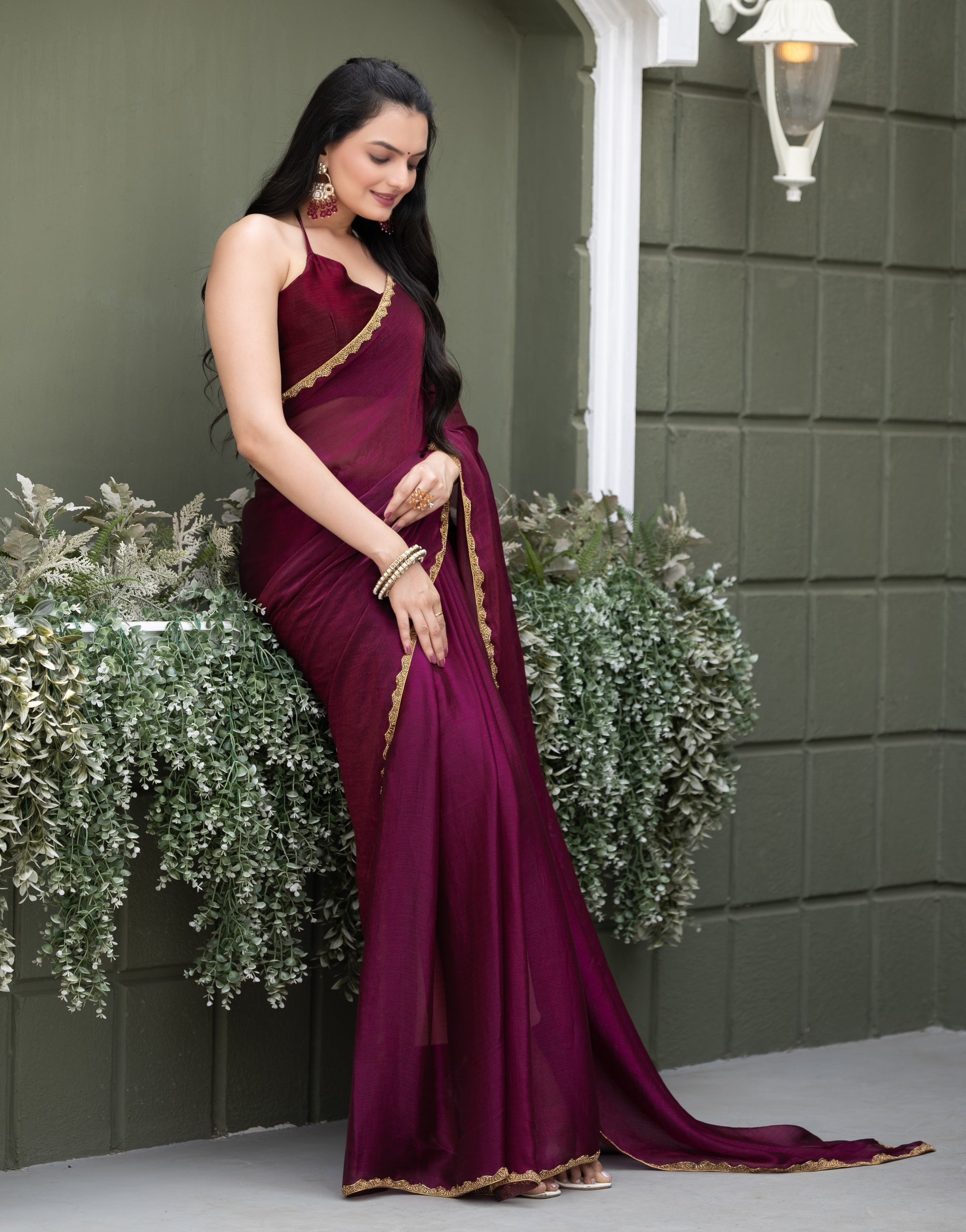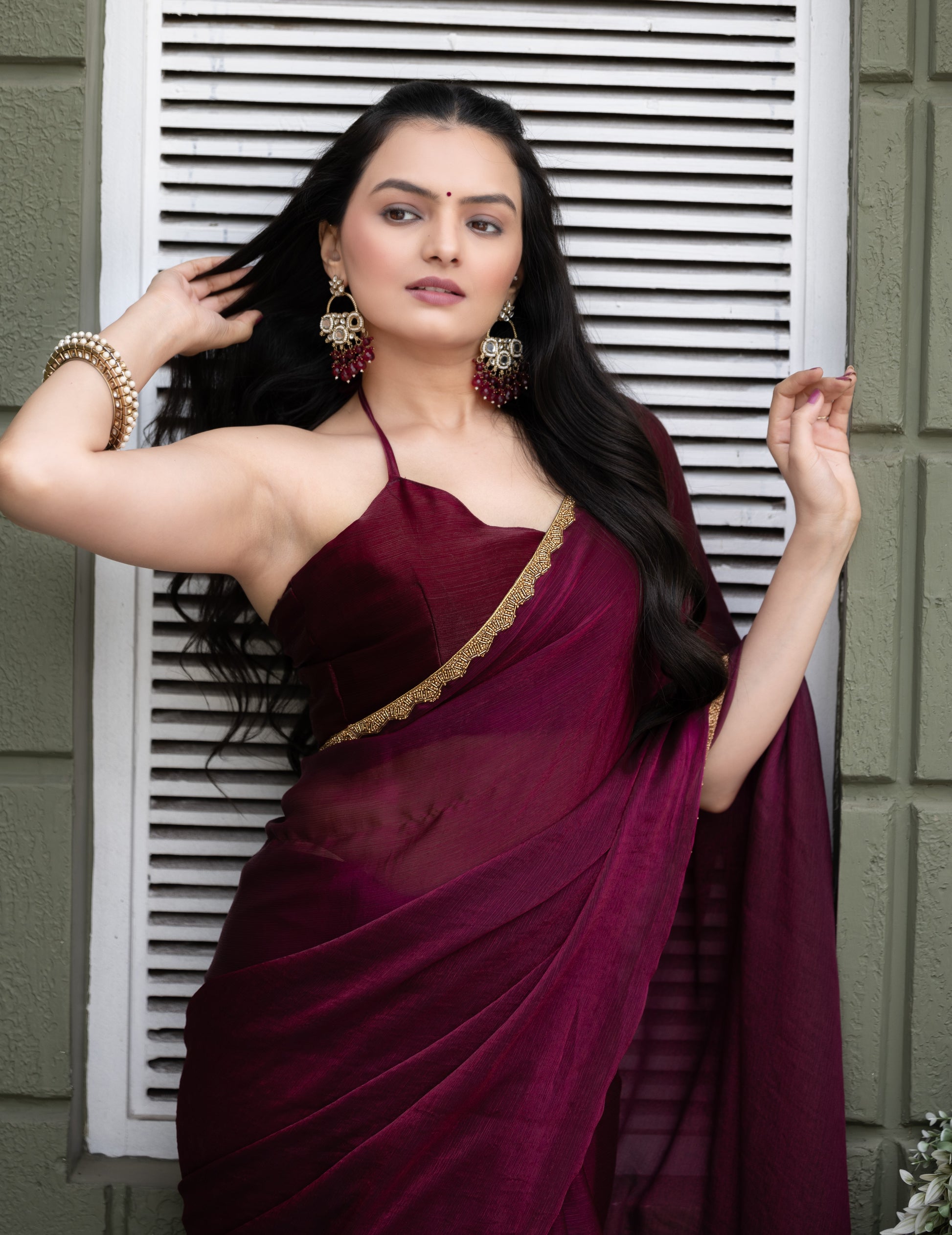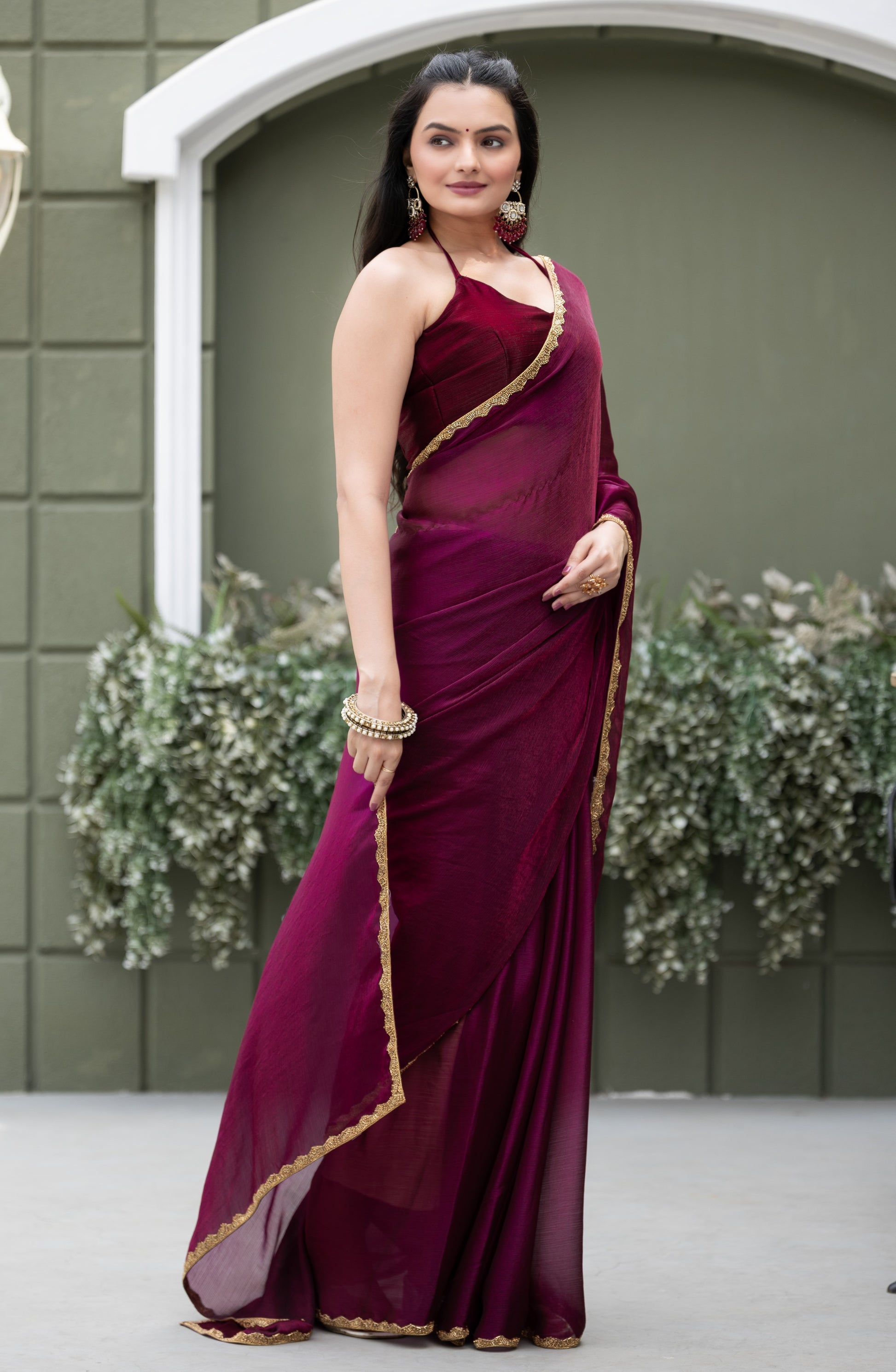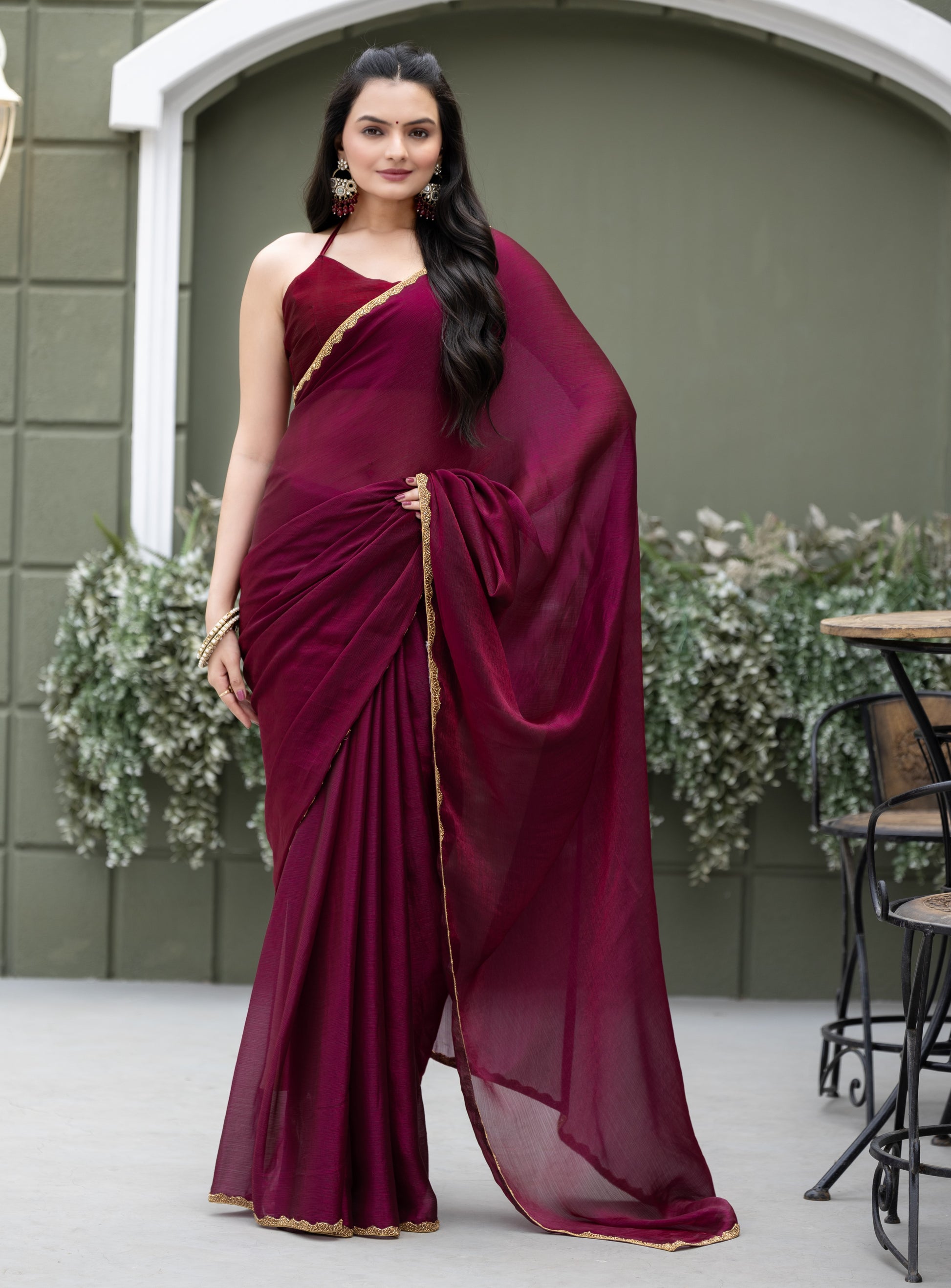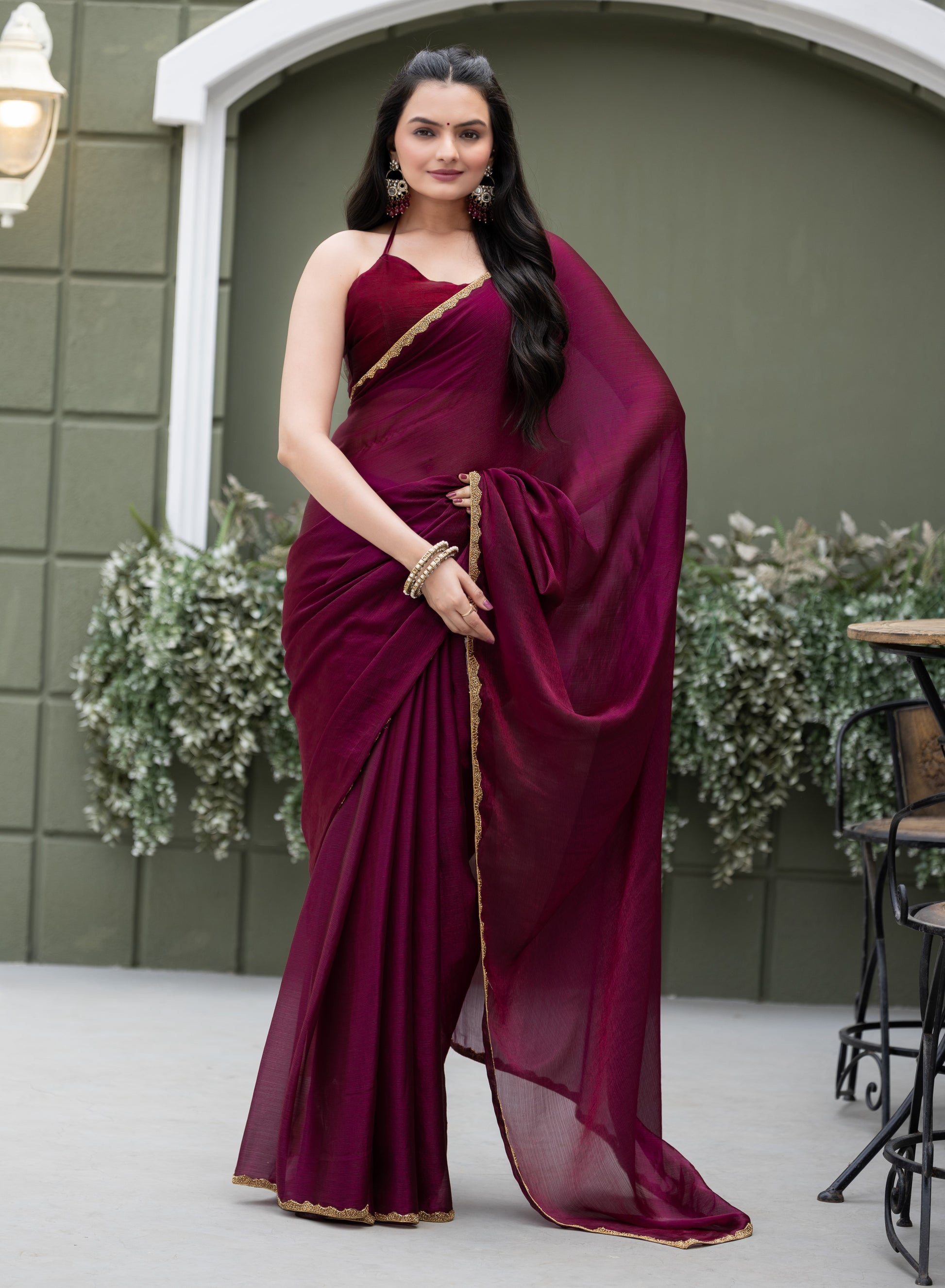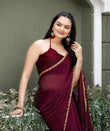 Wine Chiffon Bollywood Saree with Embellished Border