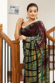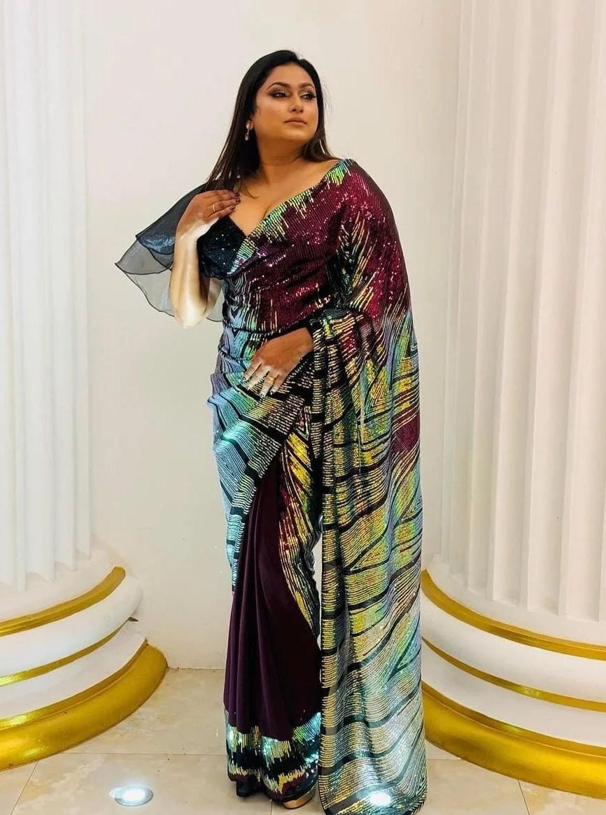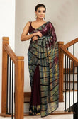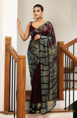 Wine Georgette Saree with Embroidery Sequence Work and Sequence Lace